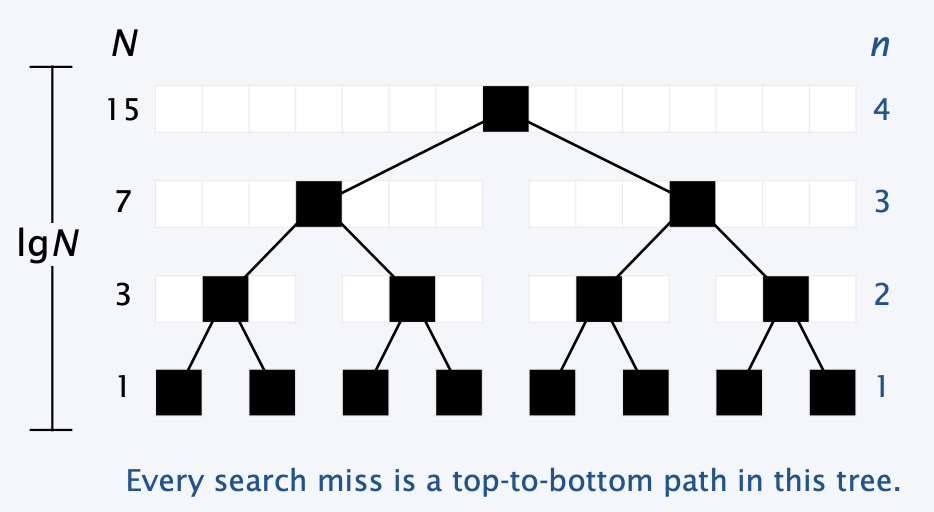 In the worse case (when we can’t find anything and we have to go all the way to the base condition), binary search will take at most O(logN) to run. This means it is much more efficient than sequential search.
