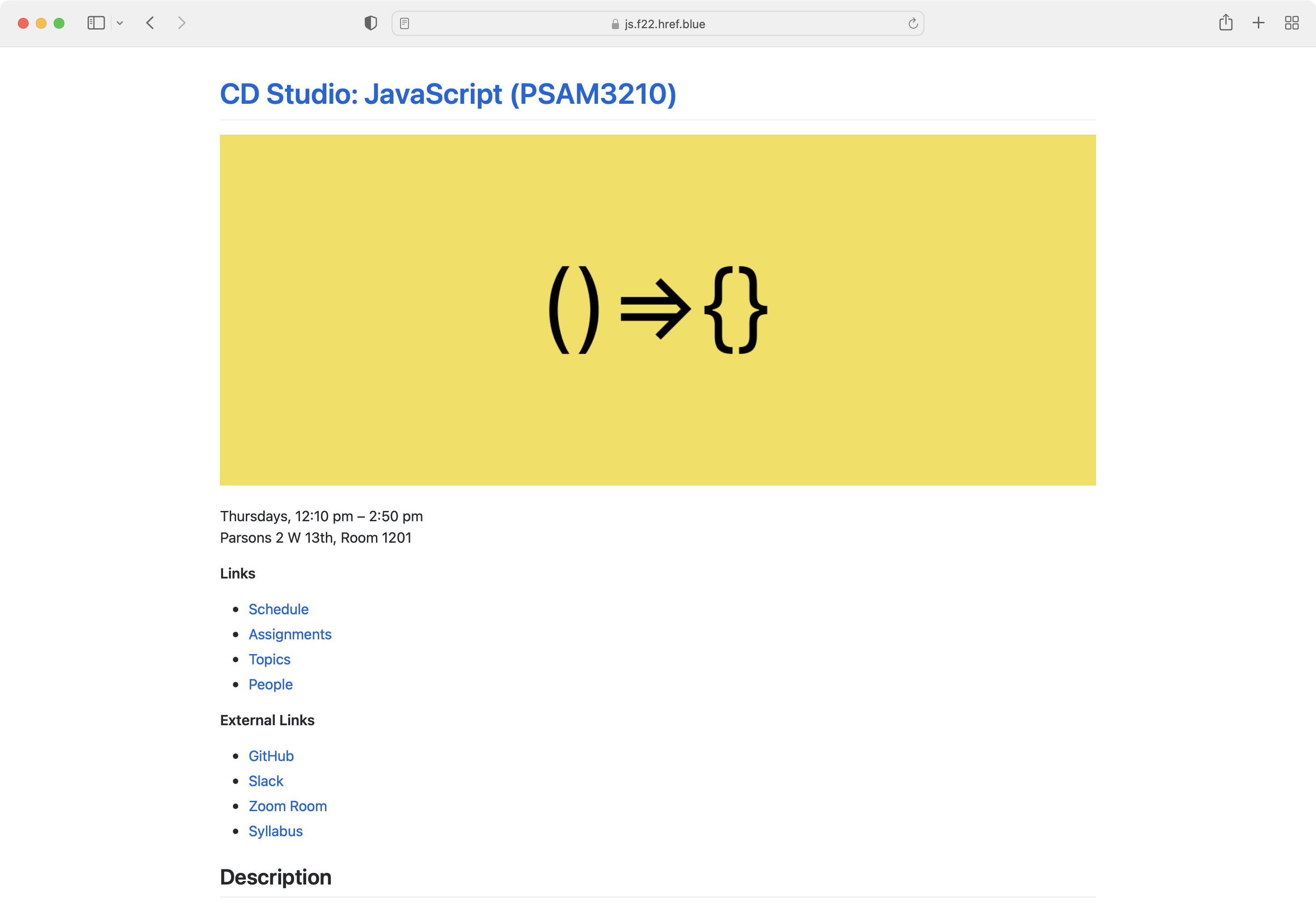 Therefore, while you will be learning JavaScript throughout this course, we will take a Computer Science first approach. What does this mean? It means that as the shape of the web changes, evolves, and grows, and perhaps someday when we have all moved beyond JavaScript, you will still have the tools necessary to program and build interactive software. In your careers, the software, languages, and platforms might be different, and to some extent, are ever-changing—but the design/technological ideas and considerations are analogous and universal.